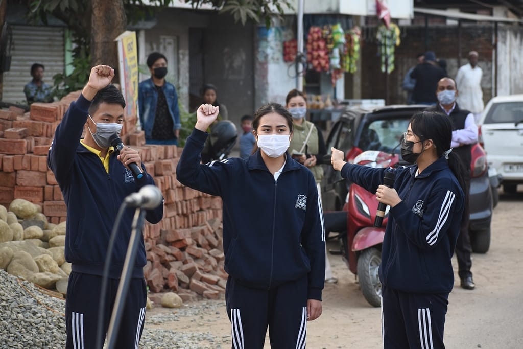 The LFI Dram Troupe under the mentorship of Mr. Uto Chishi took part in a street play on the topic of ‘Myths and Truths surrounding COVID-19’ on 13th December 2021 at DC Court Junction. The street play was organized and promoted by Breeze Women Welfare Association (BWWA) which is a registered NGO established in 1982 by socially committed Women, Youth, Scientists, Educationists and Renowned Individuals working towards improving the overall condition of socially and economically weaker sections of our society by bringing about social and educational reforms.