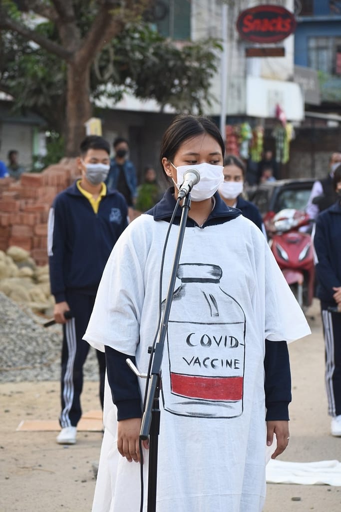 The street play projected the current situation in most parts of India and especially the North East where people are very apprehensive and skeptical towards the COVID-19 vaccine whereby they are even attributing the disease and the vaccination to supernatural and superstitious ideas and myths.