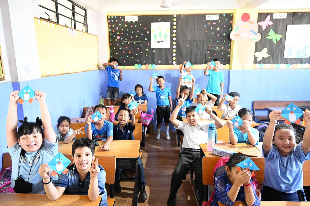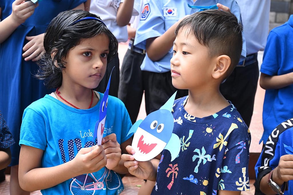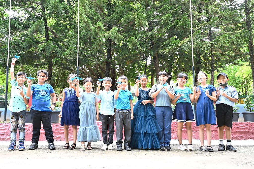 On the occasion of the Blue Day, there was a special photograph session of the students and mentors clad in beautiful Blue Colored outfits and carrying blue accessories. The students also made paper crafts and colored them with bright and varied shades of the color Blue. They were also made to recognize the blue color through various games and play-way activities.