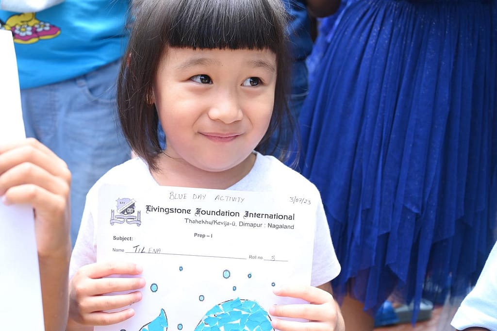 The students and mentors of Livingstone Foundation International celebrated the Annual Blue Day 2023 on 3rd July 2023. On the occasion the students of Prep-I to Grade-III were made to decorate their class-rooms with blue theme. The students also presented themselves for the special day in blue dresses. The mentors also introduced different shades and hues of blue to the students.