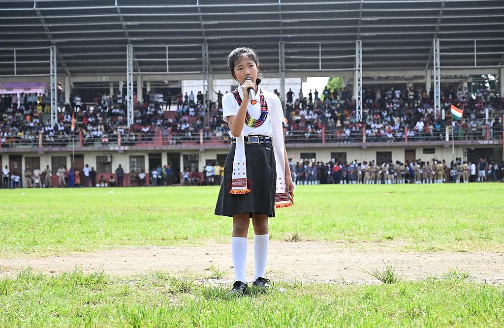 A young Stonite from Grade-V, Miss Ruangriu R. Panmei enthralled the audience at DDSC Stadium, Dimapur, with her beautiful performance of the popular patriotic Hindi Bollywood number ‘Teri Mitti’. She performed the song on behalf of Livingstone Foundation International as part of the celebration of the 77th Independence Day Celebration on 15th August 2023.