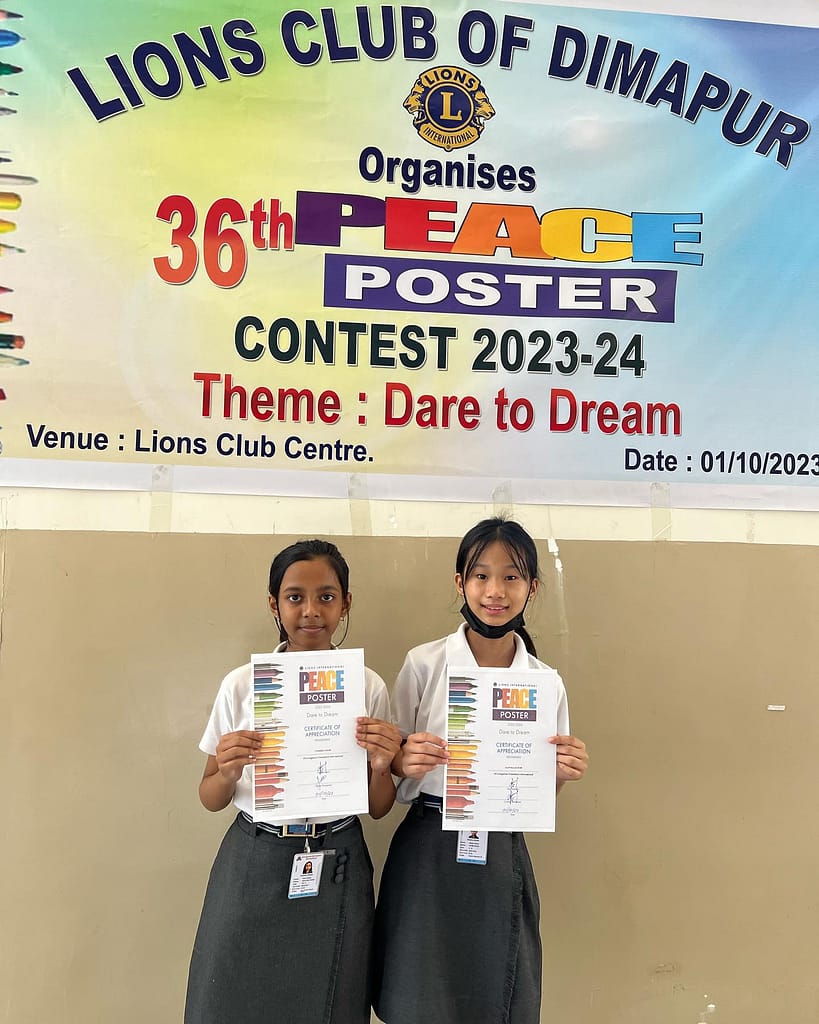 Students from Livingstone Foundation International took part in the 36th Peace Poster Contest organized by Lions Club and Blue Vanda Club of Dimapur at Lions Club Building, Midland, Dimapur on the 1st of October 2023.