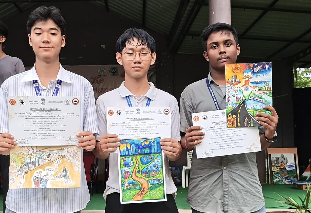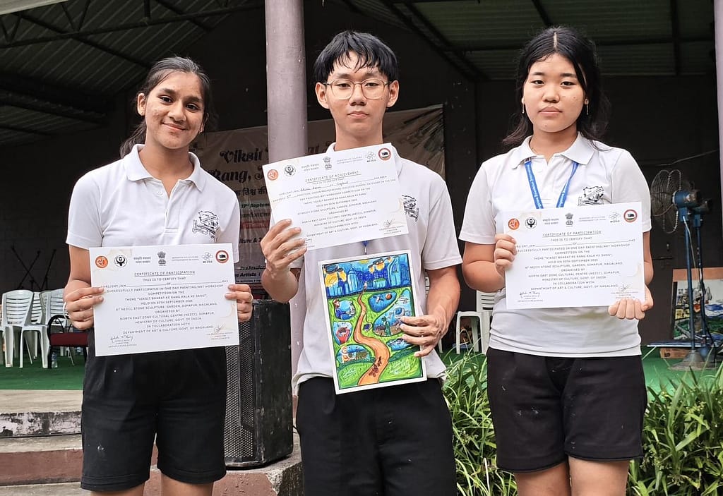 On 30th September, the North East Zone Cultural Centre (NEZCC) organized a painting competition at Stone Park, 4th Mile, Dimapur, with the theme “VIKSIT BHARAT KE RANG KALA KE SANG.” The event saw enthusiastic participation from students, colleges, and professional groups across the region, competing under three different categories. LFI participated in the school category, represented by Miss Temjensola Walling (Grade XI), Mr Akiviu Assumi (Grade XII), and Miss Himani Singhvi (Grade VIII). We are proud to mention that Mr Akiviu Assumi secured the 3rd position, bringing recognition to LFI. Despite the heat, our students demonstrated patience and dedication, completing their artworks over three hours. The competition provided a learning, fun-filled, and enriching experience, allowing students to showcase their creativity and connect with art on a larger platform.